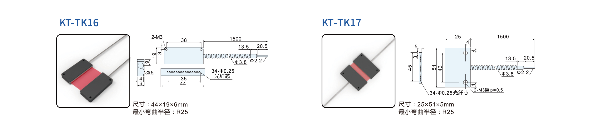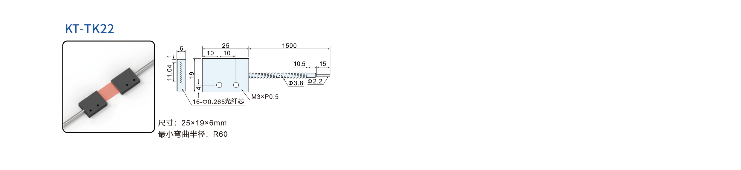 凱基特光纖傳感器是一種將被測對象的狀態(tài)轉(zhuǎn)變?yōu)榭蓽y的光信號的傳感器。光纖傳感器的工作原理是將光源入射的光束經(jīng)由光纖送入調(diào)制器,在調(diào)制器內(nèi)與外界被測參數(shù)的相互作用, 使光的光學性質(zhì)如光的強度、波長、頻率、