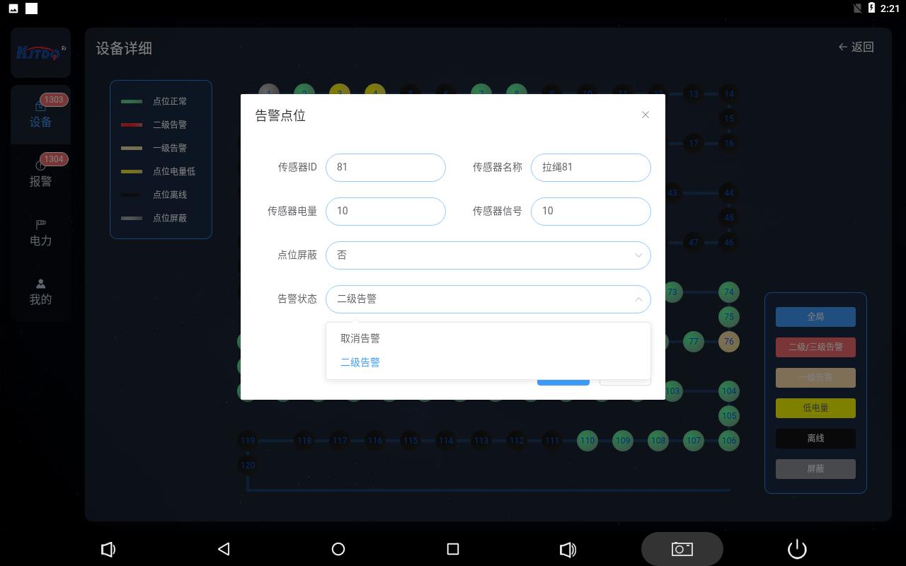 點擊圓圈彈出對應保護裝置的詳細信息,并且可以設置保護裝置的屏蔽狀態,手動解除二級告警狀態