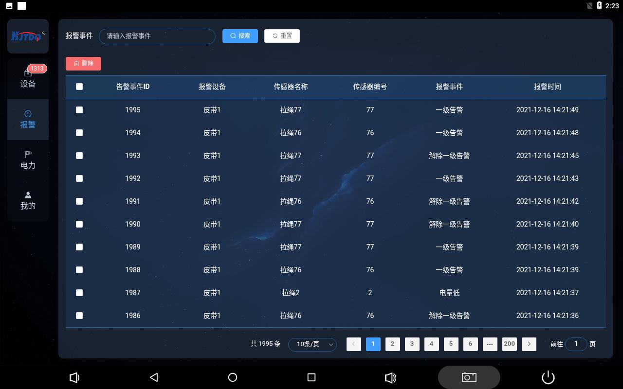 報警事件已倒序的方式排列,即展示最新的報警事件,翻頁顯示,每頁十條。