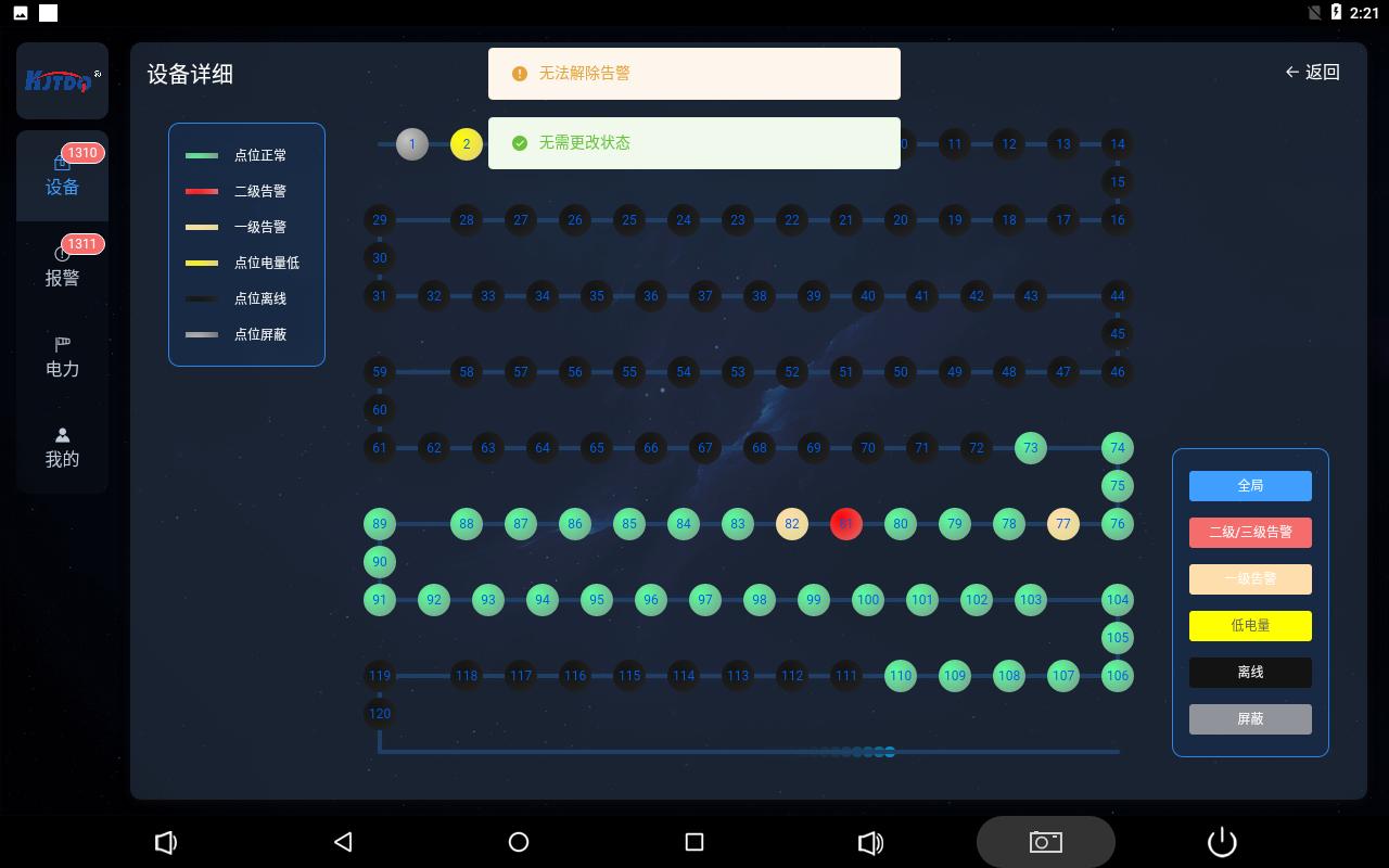 二級告警狀態需現場保護裝置二級告警解除成功,點擊解除有效,否則無效。
