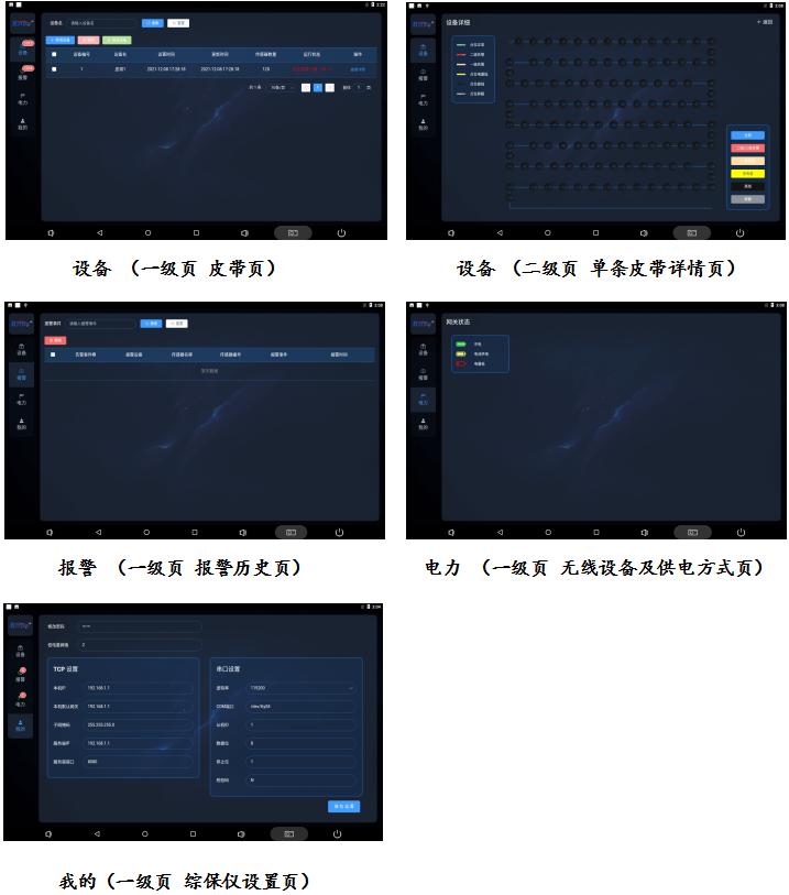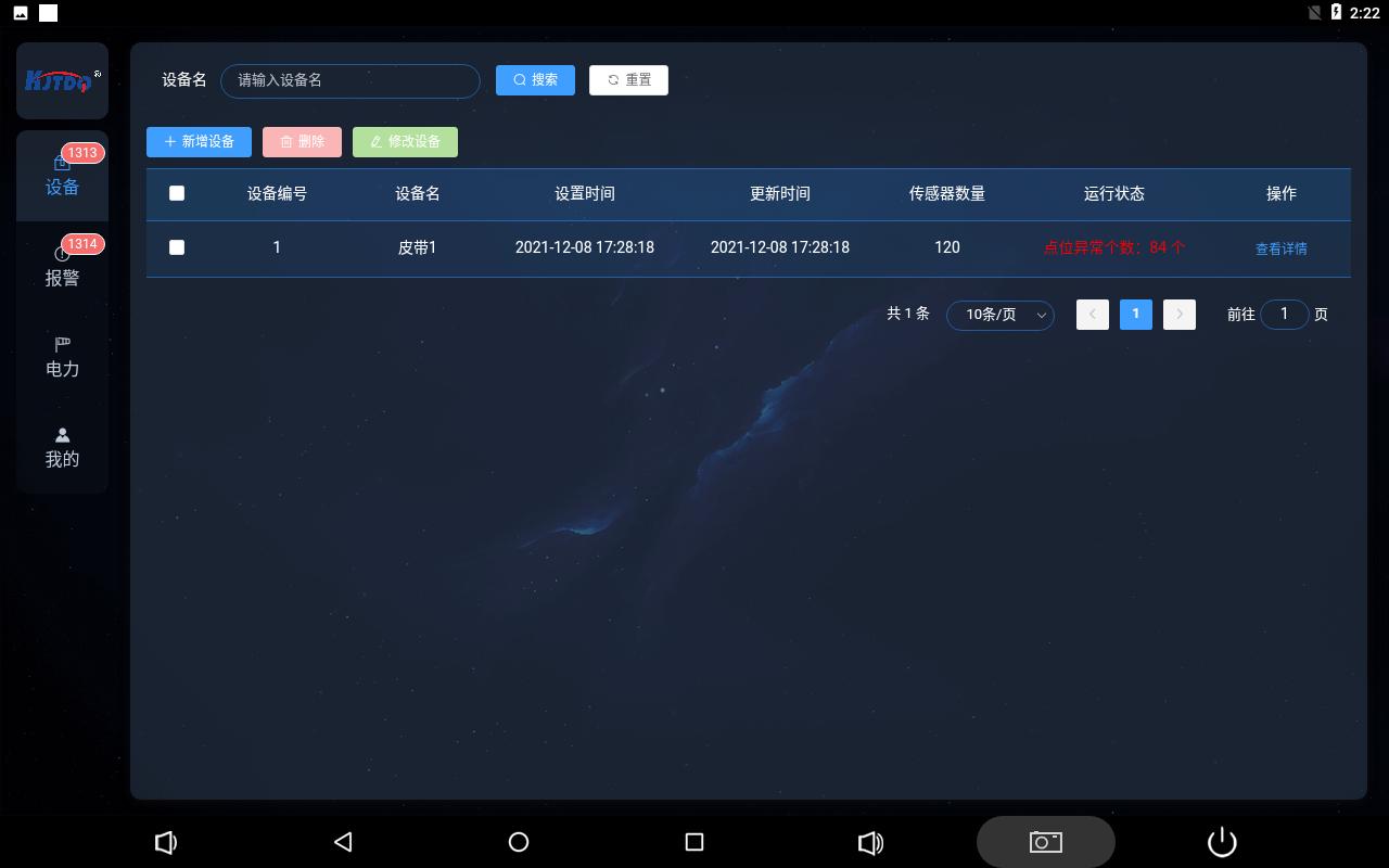 設備頁面可添加刪減配置查看皮帶數量名稱以及本皮帶上的保護裝置數量以及運行狀態